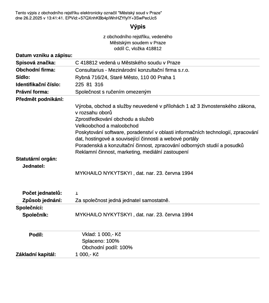 Consultarius – Mezinárodní konzultační firma s.r.o.